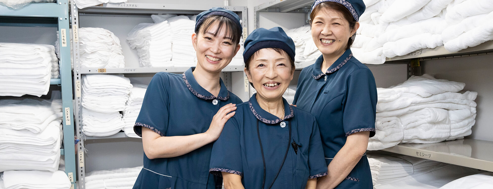 一緒に働くスタッフは性別や年齢、国籍も様々です。客室清掃はひとりで取り組む場面が多いですが、現場全体でのチームワークも欠かせません。周囲と協力しながら、コツコツと仕事に向き合える方であれば、きっと活躍できる職場です。